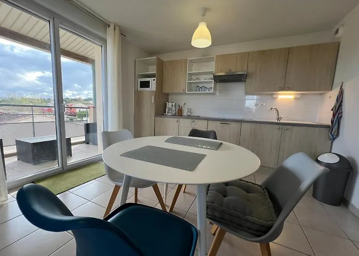 中庭の景色を見渡す54m²のカルカソンヌLe Parc! T3 Climatise, Parking, Piscineアパートメントは、カルカソンヌのラ・シテ・メディエヴァルから3.3キロメートルです。 アパートではWi-Fiを利用できますし、車でお越しのお客様のために無料の専用駐車場もあります。